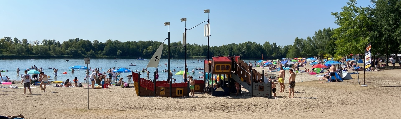 Der Badebetrieb ist eingestellt. Vielen Dank für euren Besuch! Der See ist weiterhin täglich von 10:00–18:00 Uhr zum Spazierengehen geöffnet. Signalflagge ROT = Badeverbot